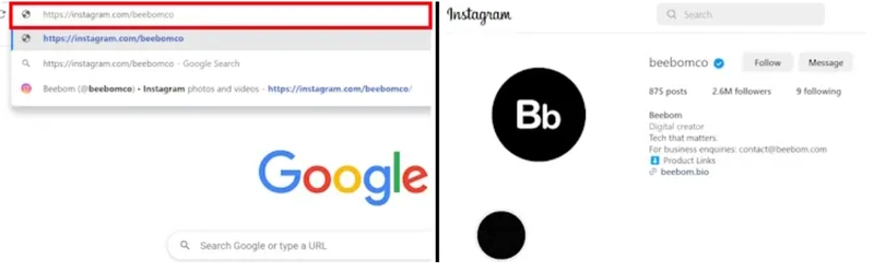 Type “site:instagram.com” followed by the username or content you're seeking.